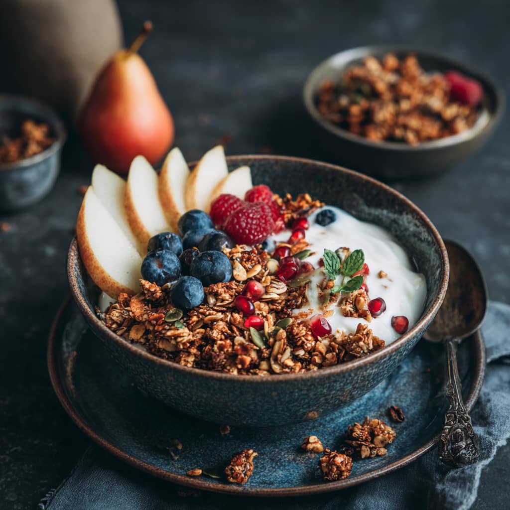 Das Granola schmeckt klassisch mit Naturjoghurt oder Skyr, ist aber genauso lecker mit Pflanzenmilch wie Hafer-, Mandel- oder Sojamilch. Als Topping auf frischem Obst oder Porridge bringt es Crunch, Geschmack und zusätzliche Nährstoffe ins Frühstück. Und ja – es funktioniert auch pur als Snack zwischendurch … allerdings mit gewisser „Wegknabber-Gefahr“.
