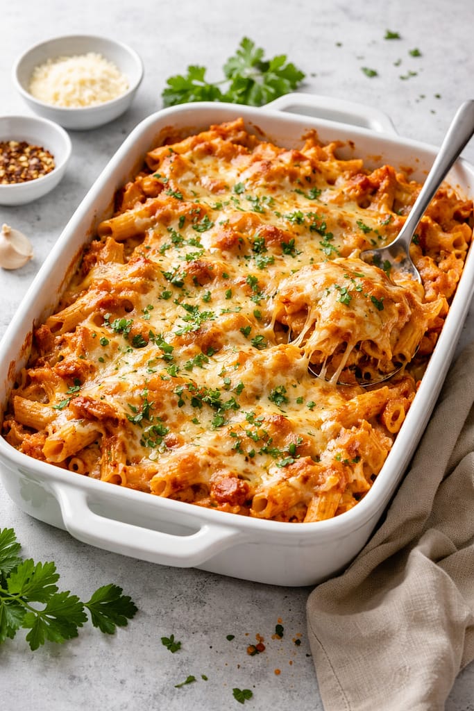 Der Nudelauflauf mit Tomaten-Sahnesoße ist ein echtes Wohlfühlgericht. Cremig, herzhaft und zuverlässig gut – genau das Richtige, wenn es unkompliziert sein soll und trotzdem satt machen darf.