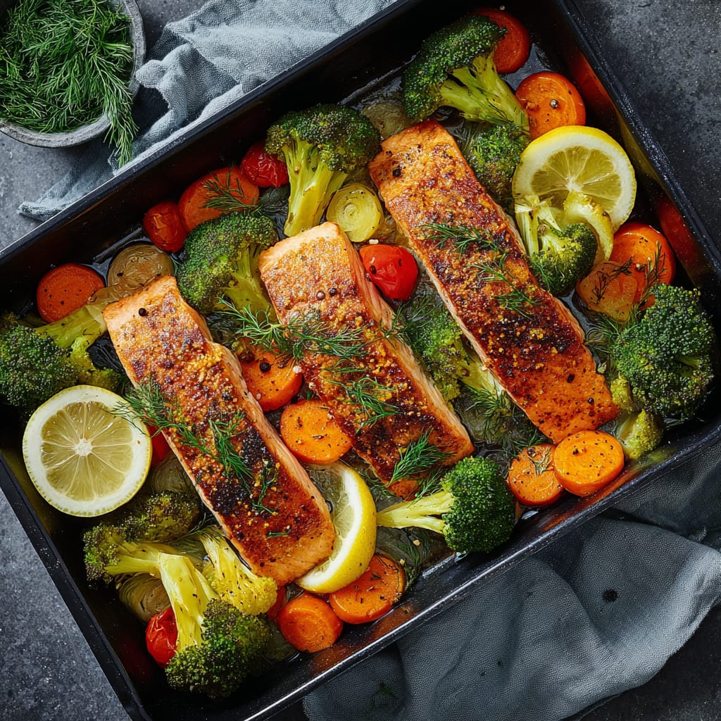 • Vegetarisch: Lachs durch Halloumi oder Feta ersetzen, Backzeit leicht verlängern.